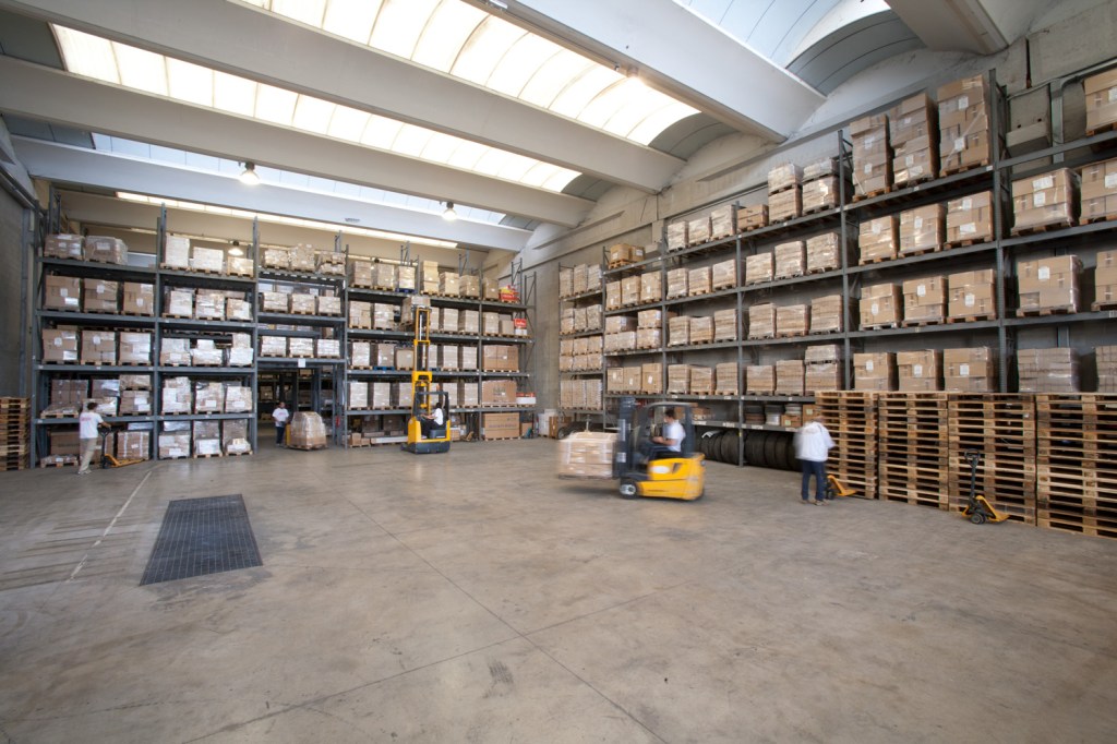 Il nostro deposito ha una superficie di 3000 mq e un’altezza di 7 metri a norma di legge per quanto riguarda la sicurezza e le uscite.